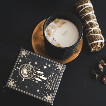 Vela Aromática de Soya, Mirra y Sándalo – Con Cristales de Citrino