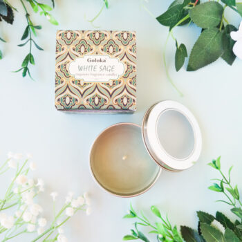 Vela Aromática de Soya, Salvia y Té Blanco – Con Cristales de Obsidiana