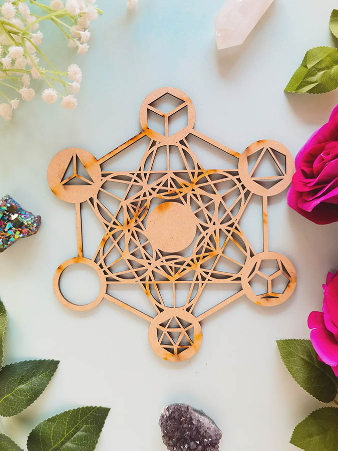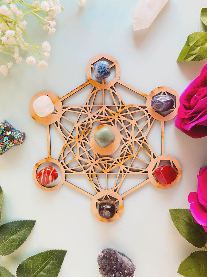 Este diseño es un patrón de creación e inspiración. Tener este símbolo visible en tu espacio, con cristales, es una manera de abrirte a su energía y el fluir universal que representa.