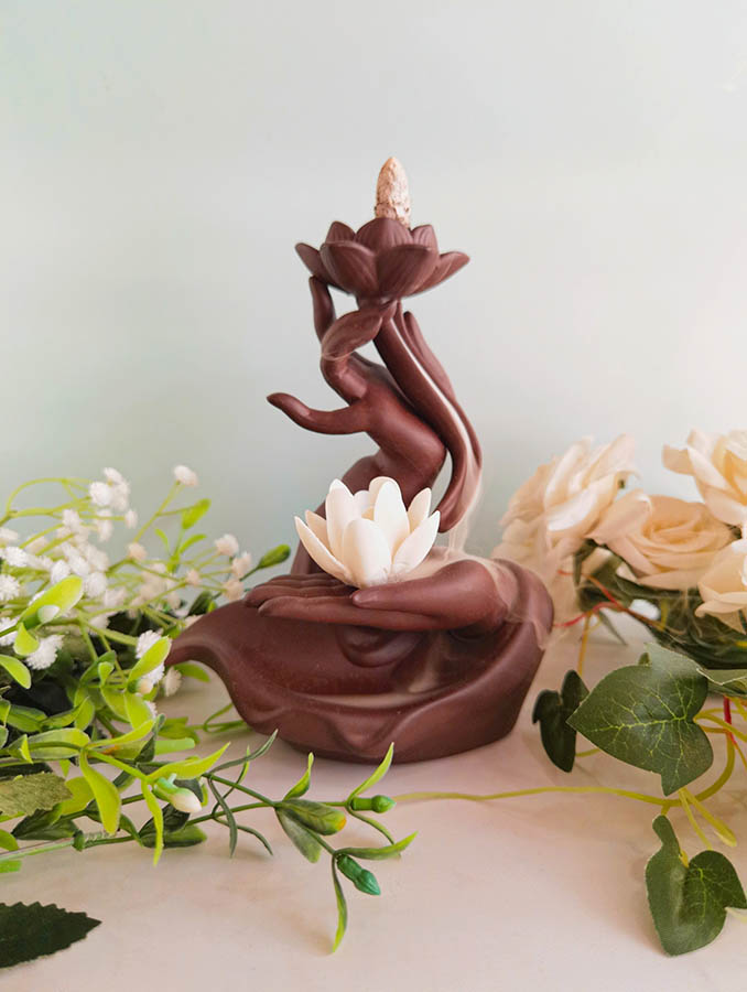 Porta incienso de cascada con flores de loto, descubre la maravillosa caída del humo que desprende del incienso, ideal para decorar tu hogar y crear un espacio de relajación.
