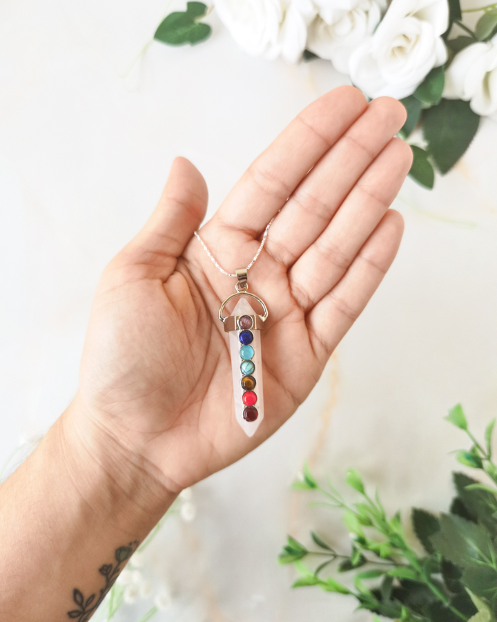 Colgante 7 Chakras Cuarzo Rosa
