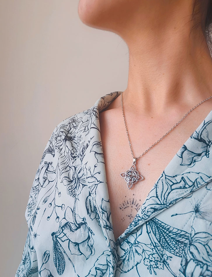 El Nudo de Bruja es un legendario amuleto de protección, originalmente es un símbolo celta asociado con la capacidad mágica de rechazar los conjuros que son arrojados contra su propietario, con intenciones malignas.