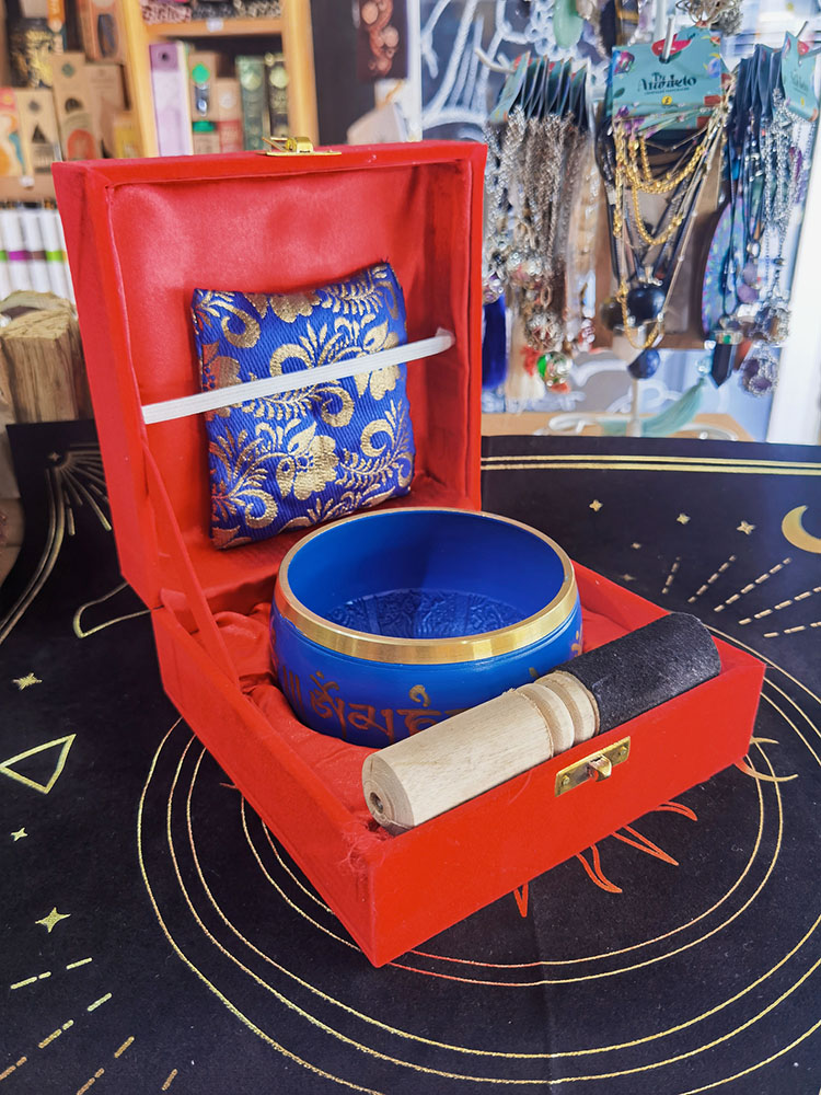 Los cuencos tibetanos son instrumentos musicales de forma circular que se hacen de una aleación de siete metales diferentes, que representan los siete cuerpos celestes del universo según la cultura tibetana. Estos metales son el oro, plata, cobre, hierro, mercurio, plomo y estaño.