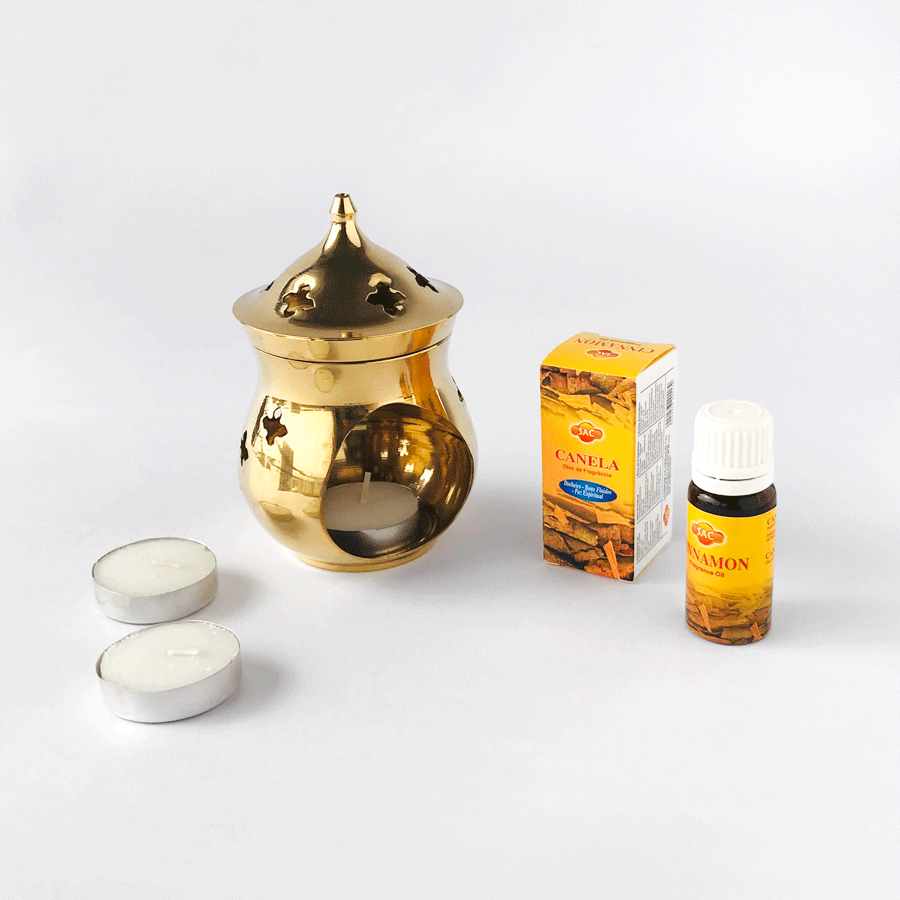 Este Kit Incluye: 1 difusor de bronce, 10 velas y 1 esencia a elección.