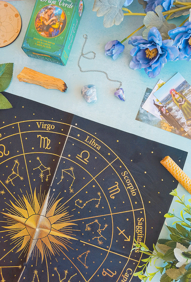 Protege tus cartas con una tela delicada y con diseños mágicos. Éste a la vez te servirá como mantel a la hora de hacer tu tirada de cartas.