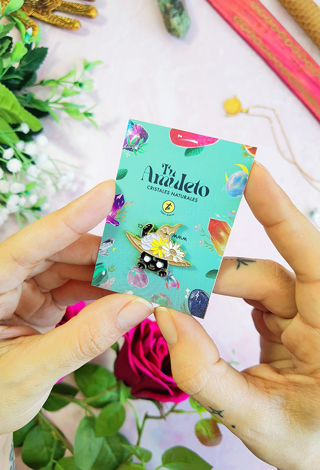 2. Coloca el pin en tu cartera, chaqueta, donde desees