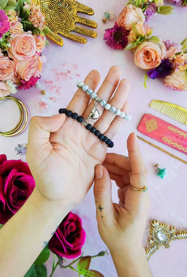 Pulseras de Conexión – Howlita y Piedra Volcánica