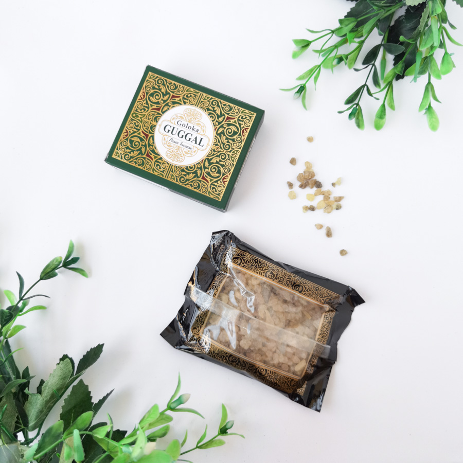 Resina que rejuvenece, aumenta la energía y proporciona una sensación general de bienestar, purifica el aire y limpia el cuerpo. Guggal viene de la palabra sánscrita “Guggulu” que significa “protege de enfermedades” por lo que esta resina tiene afinidad por todos los tejidos del cuerpo eliminando sus toxinas. Ayuda a los sistemas nervioso, circulatorio y respiratorio.