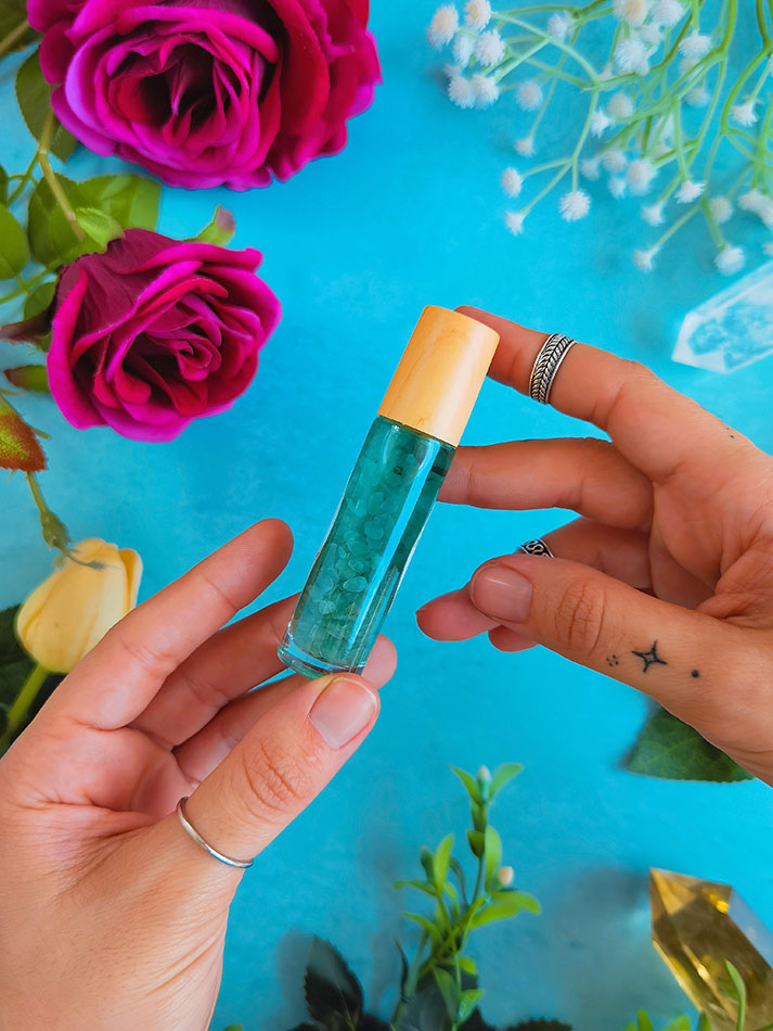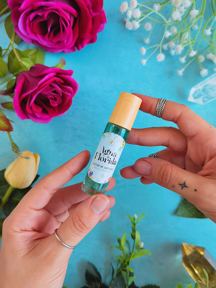 Perfume aromático en Roll On, elaborada a base de aceites esenciales y cristales, cuyo uso refresca cuerpo, mente y espíritu. Ideal para limpieza energética y calmar la ansiedad.