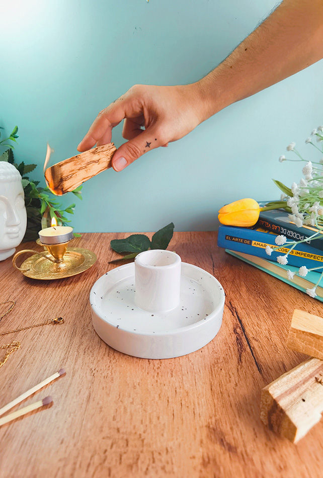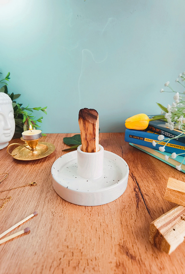 Diseñado especialmente para acompañar tus rituales de purificación energética con palo santo y sahumerios.