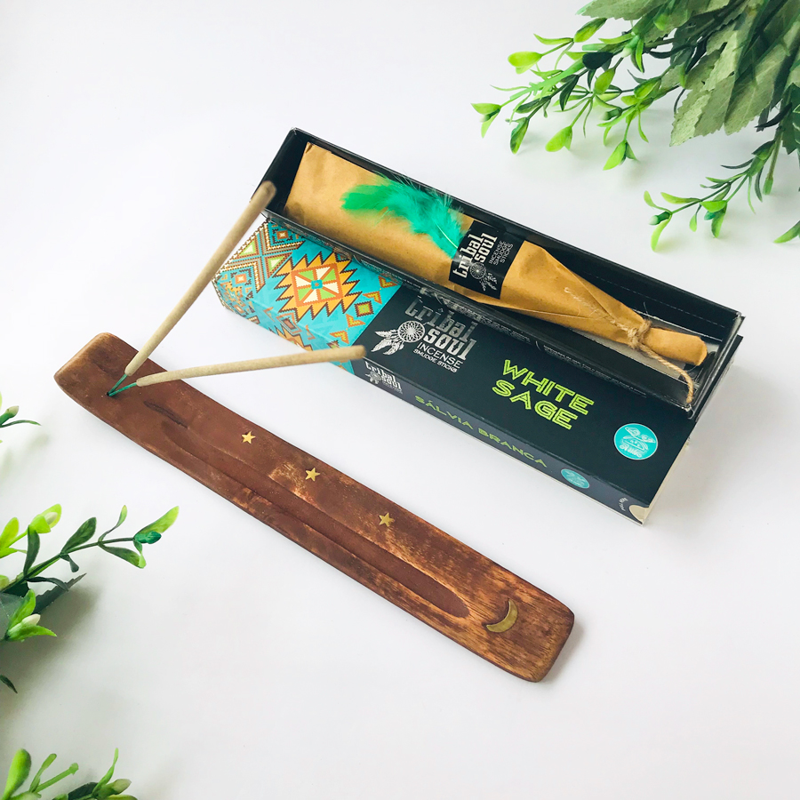 Incienso artesanal de India a base de Salvia Blanca; su aroma fresco purifica el ambiente, alivia condiciones respiratorias y es usado como herramienta espiritual y curativa.